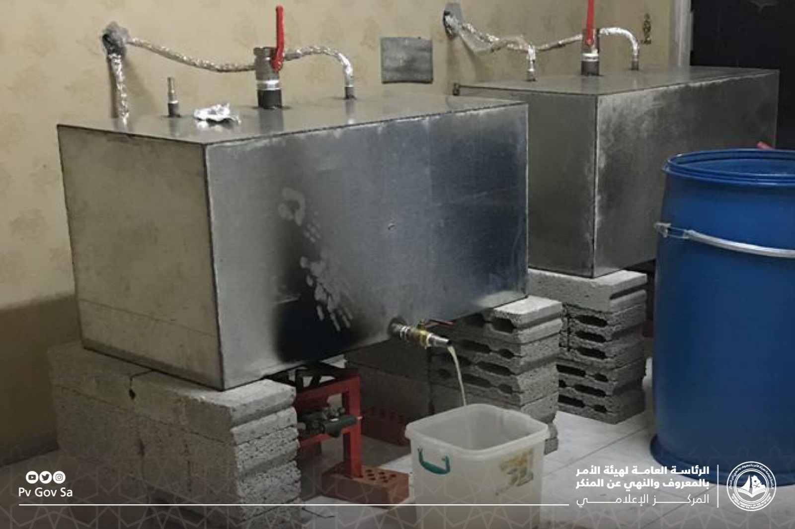 في إطار التعاون الأمني بين هيئة الأمر بالمعروف والنهي عن المنكر بمنطقة الرياض وشرطة المنطقة تم ضبط وإتلاف عدة مصانع للخمور أحدها داخل أحد الأودية بمدينة الرياض، وتديره مجموعة من العمالة الوافدة التي تقيم في البلاد بصورة غير نظامية.