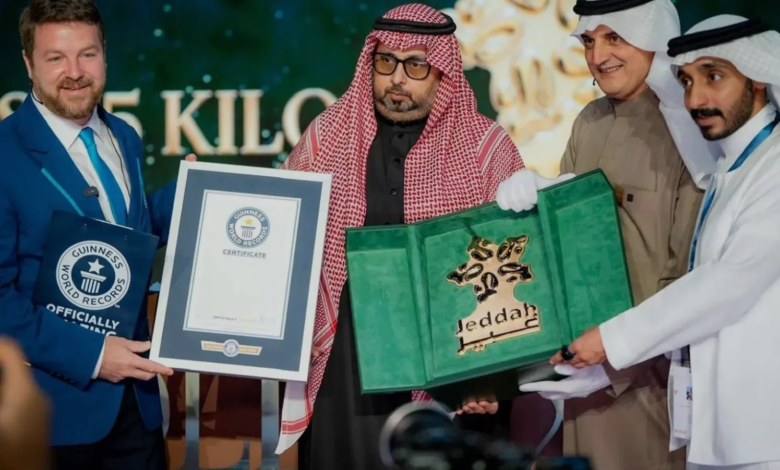 سجّلت موسوعة “غينيس” للأرقام القياسية شعار موسم جدة، كأثقل درع لشعار مصنوع من الذهب في العالم، بوزن بلغ 8.769 كيلوجرام.